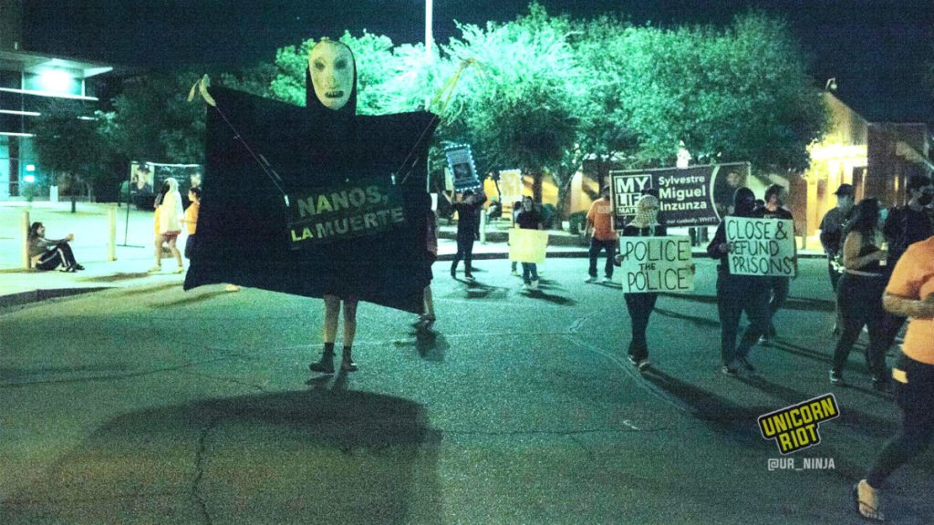 Tucson, AZ – A crowd of about 60 people slowly converged on the empty plaza and parking lots of Pima County Jail Friday night. Bathed in the yellow glow of the streetlights, some gathered in groups and chatted while others hurriedly constructed frames for their custom-made vinyl banners commemorating their family members whose lives were lost in the jail.